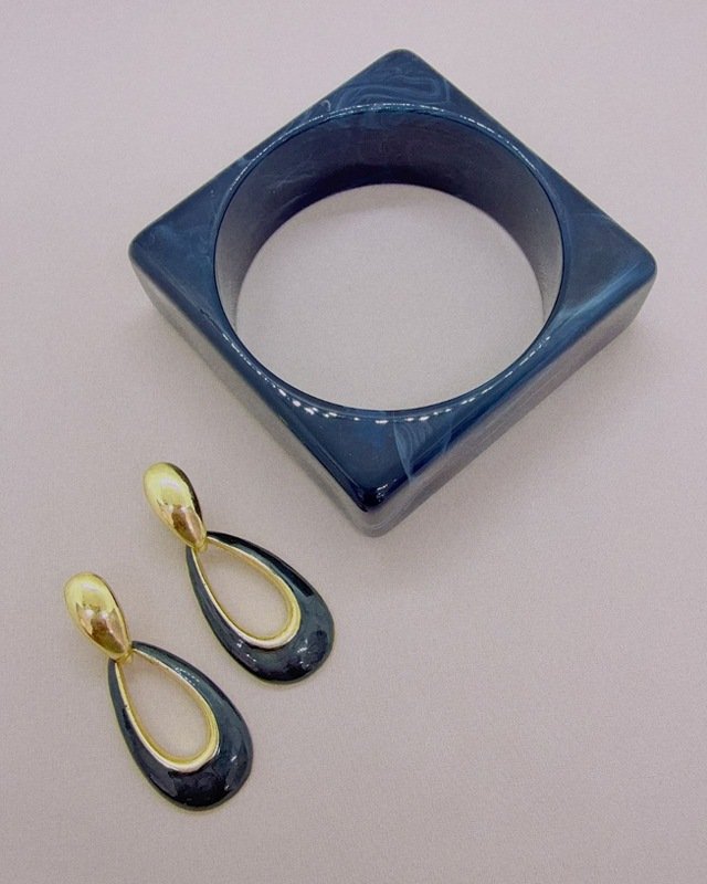 Set en resina y acero laminado con baño en oro 18k